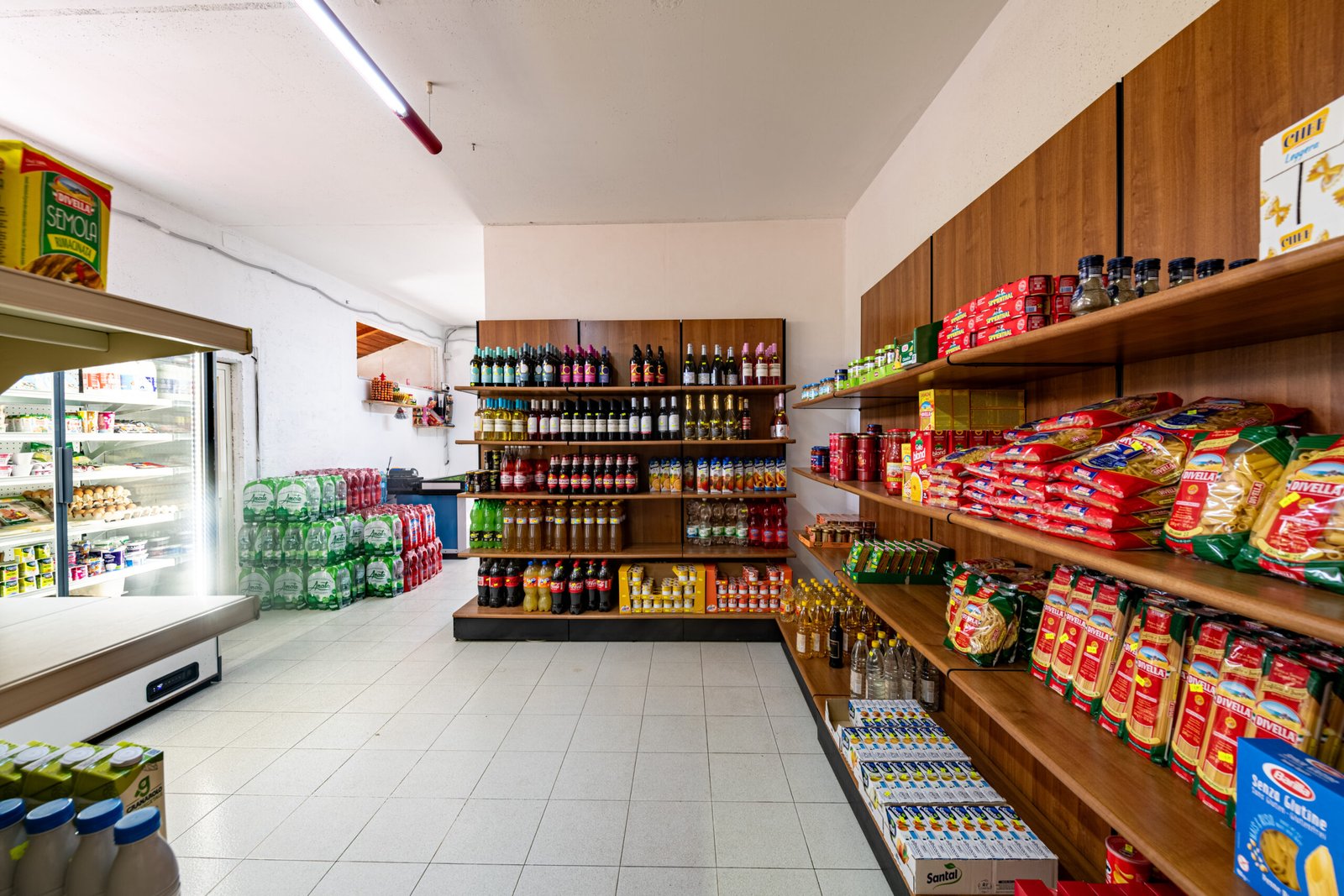 Market-bazar fornito, reparto frutta e verdura, tabacchi e giornali